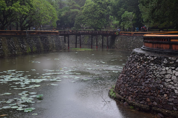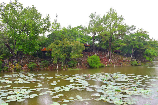 Cuando la lluvia nos concedió una tregua reiniciamos la ruta que nos llevaría a la última parte del complejo, bordeando el precioso lago que parece actuar de foso para proteger la tumba del emperador.