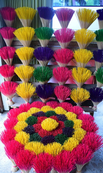 Y de camino a la siguiente tumba hicimos una parada en una tienda de incienso. No es que tuviera demasiado interés, pero me llamó la atención el arcoiris de colores que desplegaba la dueña.