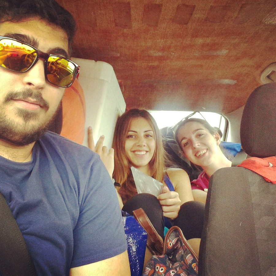 El viaje más infinito del mundo. ¿Tantas horas en esta posición? ¿Sujetando la caja de corcho que llevamos por nevera con la cabeza? Ni un brazo, ni una pierna podíamos mover... Salir y entrar al coche, para Laura y yo que íbamos detrás era una misión imposible. En los descansos para estirar las piernas, cuando toda la gente bajaba a fumarse un cigarro, Laura y yo aguantábamos dentro del coche para no tener que desemparejarnos y volvernos a encajonar. Queríamos un viaje del tirón! Aun así la pierna se me empezó a cargar y tuve que moverme como pude para que no me diese una rampa. Ese minúsculo movimiento que hice fue suficiente para que empezaran a caer cosas debajo de mis piernas hasta el punto de que cuando quise volver a mi posición tenía las piernas tocando el techo y me era imposible moverme!! y tuve que pedir ayuda :( ...