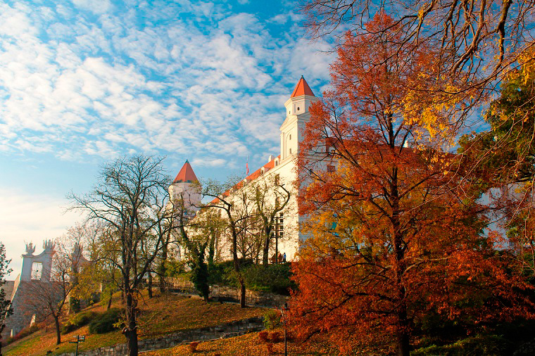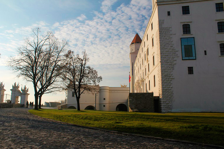 Llegamos entonces sobre la hora de comer a la orilla del Danubio. Aunque estaba el sol fuera, el día era nublado y un poco feo. La verdad es que fue un error no callejear un poco más por el casco antiguo, pero al menos nos dio tiempo a subir al castillo de Bratislava, el edificio más conocido de la ciudad ya que aparece en prácticamente todas las postales.