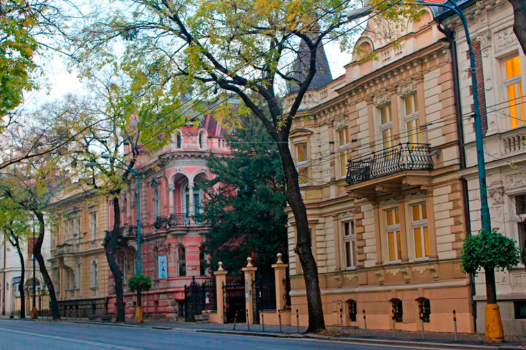 Al llegar a esta avenida, Obchodná, lo primero que nos llamó la atención fue la pared de un edificio donde había varias cabezas de militares rusos. Se trata del Slovenské múzeum dizajnu, o museo de diseño, aunque me gustaría saber qué pitaban esos militares ahí, para qué había servido ese edificio. Continuamos por esa avenida tan cuqui porque daba la sensación de que la ciudad fuese rosa! así que me estaba gustando jijiji.
