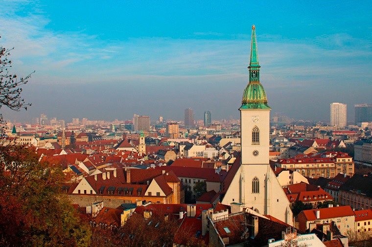 La intención era entrar al casco antiguo por la Puerta de San Miguel, pero al equivocarnos accedimos por Ursulínska, viendo a mano derecha la iglesia de Kostol Zvestovania. Está claro, esto tenía que ser el casco antiguo. Así que ya solo nos quedaba dejarnos llevar pos las calles que más nos gustasen y disfrutar.