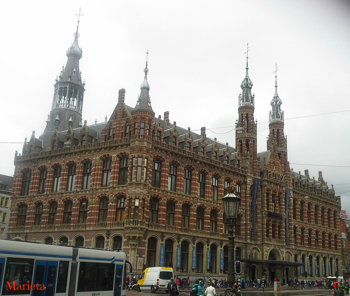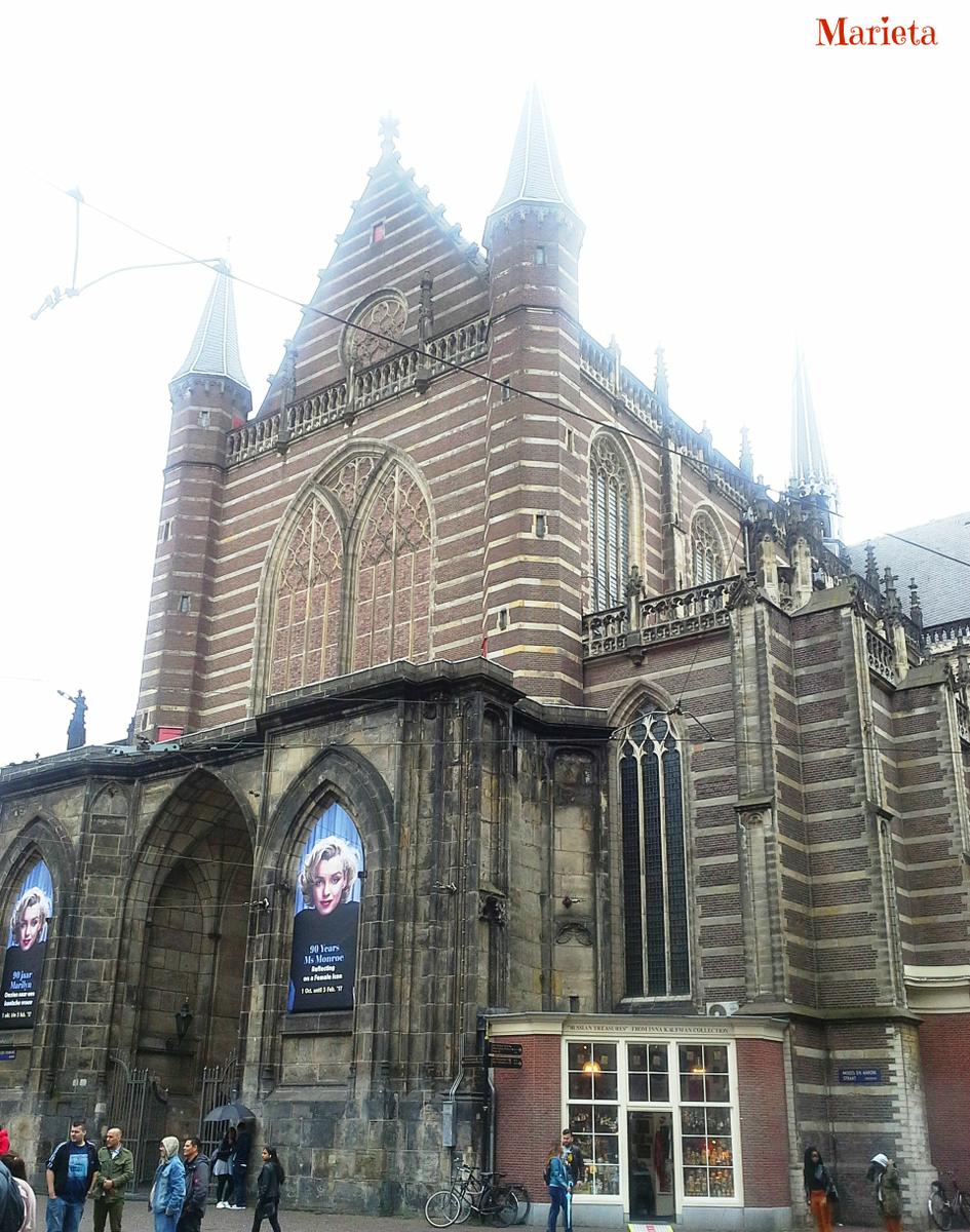 La caminata comienza a abrirnos el apetito y decidimos regresar al punto de partida para buscar algún lugar donde reponer fuerzas. En las inmediaciones de la plaza Dam visitamos antes la Nieuwe Kerk (Iglesia Nueva) del siglo XV. Casi enfrente de la misma está situado el precioso edificio de estilo neo gótico de la antigua Oficina de Correos, en la actualidad convertido en el Shopping Magna Plaza.