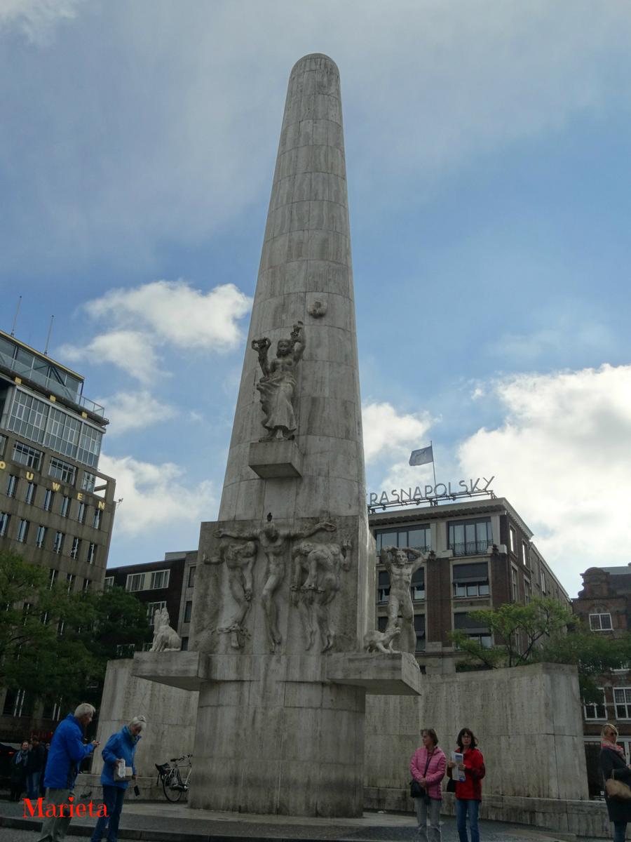 Esta plaza es, desde los orígenes de la ciudad, el centro de la misma. Dam significa “presa”, y aquí se fundó la presa sobre el río Amstel en el S.XIII, de ahí deriva el nombre de Amsterdam. El diseño de la plaza en su totalidad es obra del arquitecto J.J. Oud. Se sitúan en ella importantes edificios: el Palacio Real construido primeramente como ayuntamiento, La Iglesia Nueva originaria del S.XV, o el famoso NH Amsterdam Gran Hotel Krasnapolsky, donde se alojan todas las celebridades que llegan a la ciudad. Al otro lado de la plaza está también el Museo Madame Tussauds, y casi en el centro de la misma se halla el National Monument, levantado en honor a los caídos en la segunda guerra mundial.