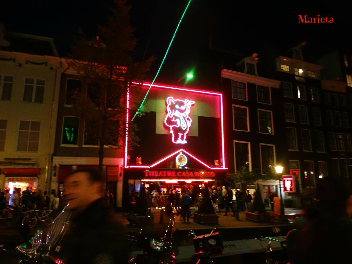 Se aproxima la hora de comienzo de nuestro tour por el Barrio Rojo, así que nos encaminamos de nuevo a la plaza Dam, punto de encuentro con nuestra guía. El distrito rojo de Amsterdam es el más antiguo y turístico de la ciudad, y uno de los barrios más famosos y polémicos de Europa. Famoso por los escaparates en los que se exhiben las mujeres que ejercen la prostitución, las tiendas eróticas y los coffeeshops, es el mejor ejemplo de que en Amsterdam todo, o casi todo, está permitido.