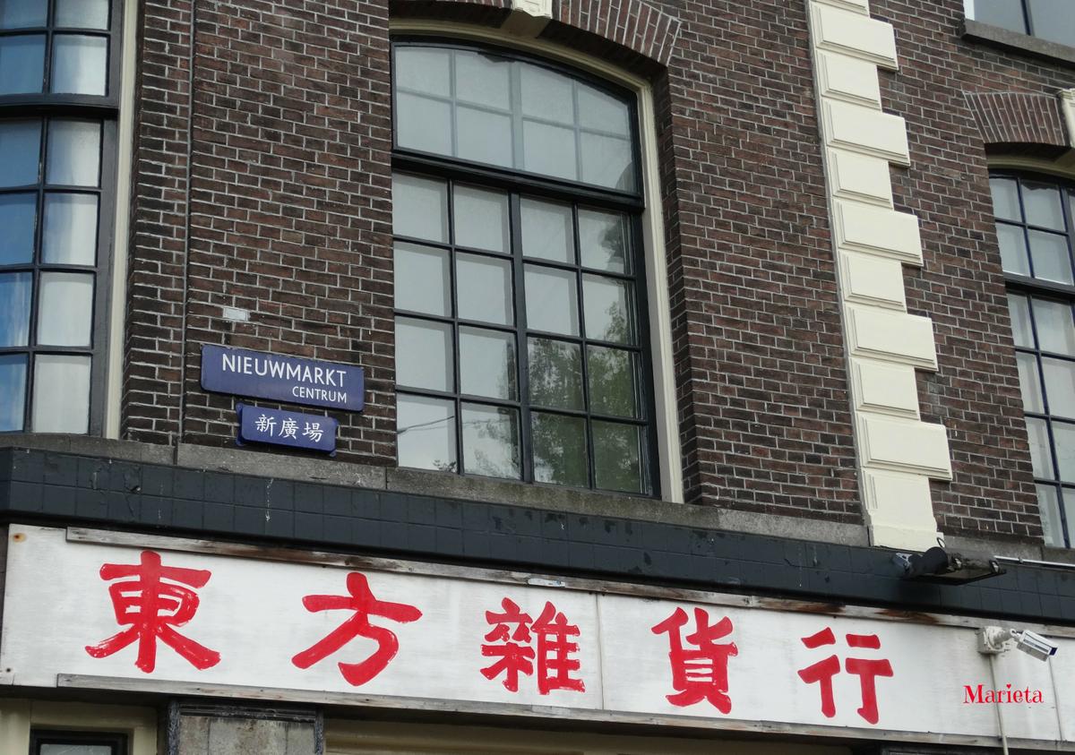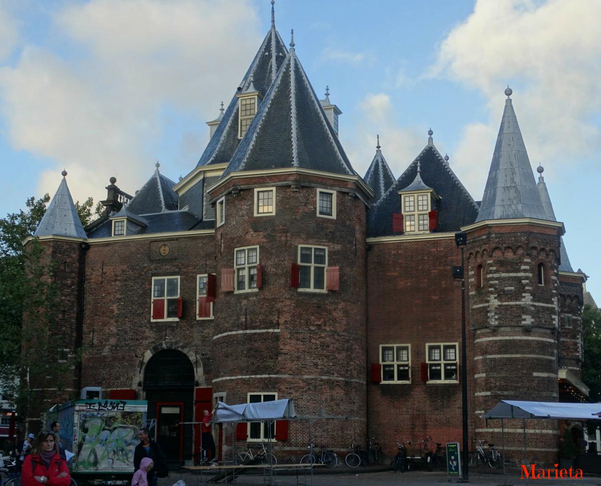 Siguiendo con el paseo nos encaminamos hacia la Nieuwmarkt, la plaza del nuevo mercado. Data esta plaza del año 1614, y desde entonces ha sido siempre sede de un mercado que se celebra aún todos los días. Los sábados se dedica a productos biológicos y los domingos se convierte en un mercado de antigüedades y libros. Además de mercado, este fue lugar de ejecuciones públicas en época medieval, y durante la ocupación alemana, los nazis agrupaban allí a los judíos que iban a ser deportados a los campos. Esta plaza forma parte del barrio chino de Amsterdam y en ella abundan las cafeterías y coffeeshops.