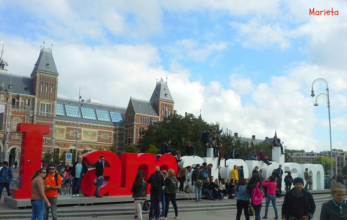 El Museo Van Gogh, nuestro siguiente objetivo, está próximo al “Rijks”. Nos encaminamos hacia allí, pero antes nos hacemos la foto típica y tópica en el lema de la ciudad. Las enormes letras de “I amsterdam” situadas en la Museumplein.