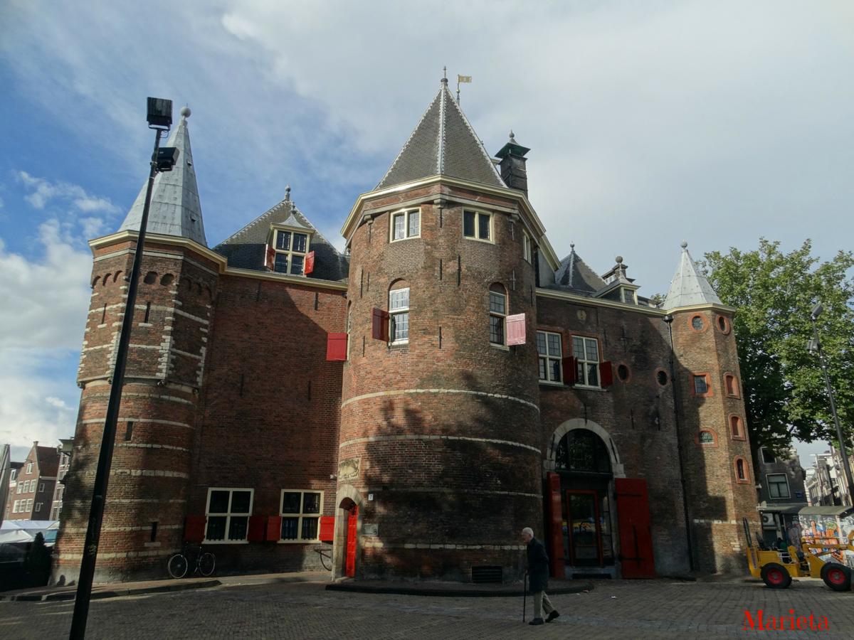 En Nieuwmarkt se encuentra el Waag, la “casa del peso”, uno de los edificios medievales mejor conservados de Amsterdam. En el siglo XV formaba parte de la muralla que protegía la ciudad, se trataba de un pórtico conocido como la puerta de San Antonio. En el siglo XVII las murallas empezaron a desmoronarse y el pórtico perdió su funcionalidad, pero se decidió agregar un techo entre sus torres, utilizándose como sede de distintos gremios en la recién instalada plaza del mercado. Unos años después se añadieron al conjunto una cúpula y una torre central que le dieron el aspecto que tiene en la actualidad.