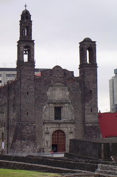 Como era costumbre, los españoles levantaron sus templos sobre los restos aztecas, como el templo franciscano de Santiago, de estilo muy severo, tanto que parece militar.
