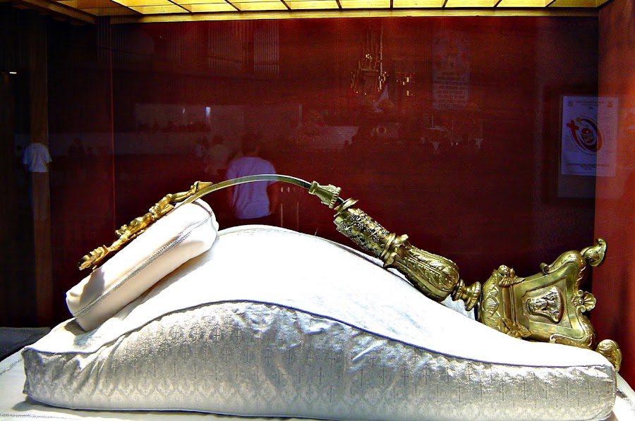 También se exhiben varios objetos que tuvieron que ver con el atentado del 14 de noviembre de 1921, cuando un obrero, según parece contratado por el general Obregón, colocó un ramo de flores con una bomba en su interior a los pies de la Virgen. Al momento estalló, causando grandes daños, como el crucifijo doblado que vemos en la foto. Sin embargo ni la Imagen ni el cristal que la protegía sufrieron daño alguno.