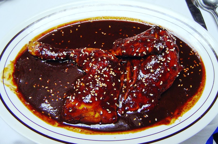 Evidentemente las estrellas del menú son el Mole Poblano y el Chile en Nogada. El primero es un laborioso plato a base de pavo o pollo, bañado en salsa preparada con cacao o chocolate de tableta sin o con muy poco azúcar, chiles anchos, chiles mulatos, chiles pasilla, chipotle, jitomates, almendras, plátano, nueces, pasas, ajonjolí, clavo, canela, perejil, pimienta, cebolla, ajo y tortillas. El resultado es una fiesta para los sentidos.