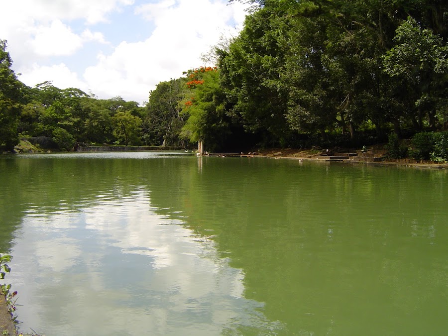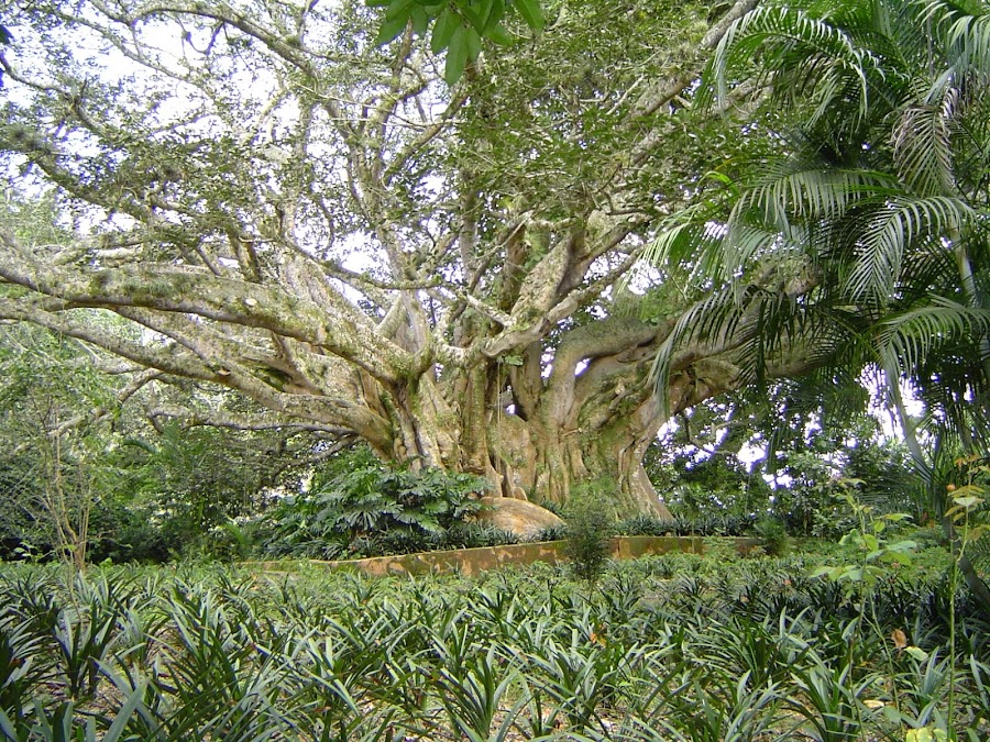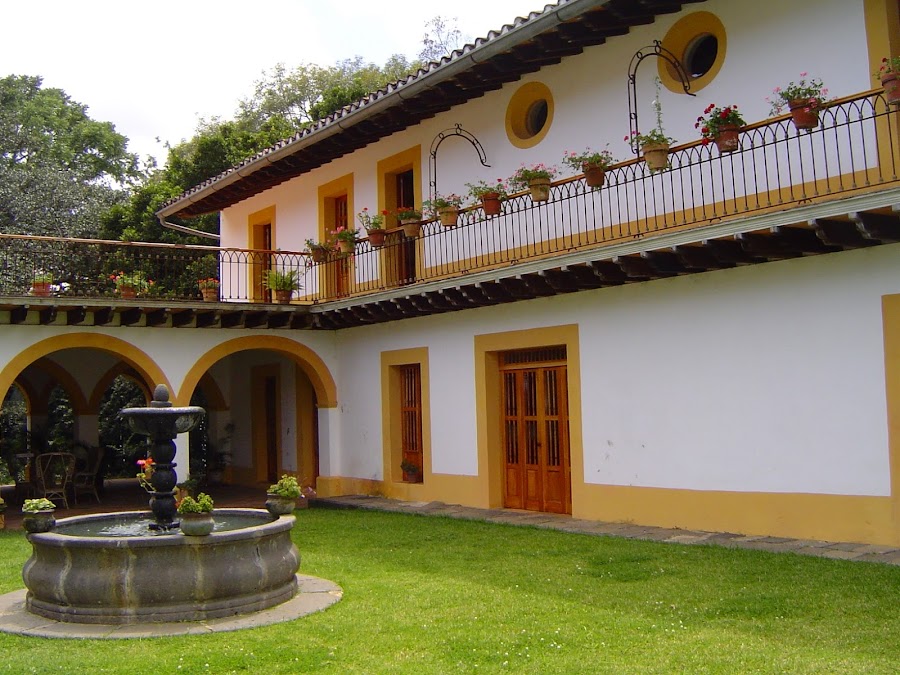 Llegamos a la hacienda con nuestro guía, y tras pagar la entrada visitamos primero el jardín, con una higuera gigantesca y muchos senderos con laureles. En uno de sus lados, gracias a un manantial hay un pequeño lago.