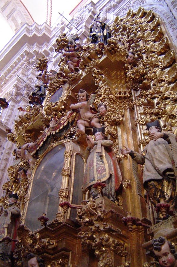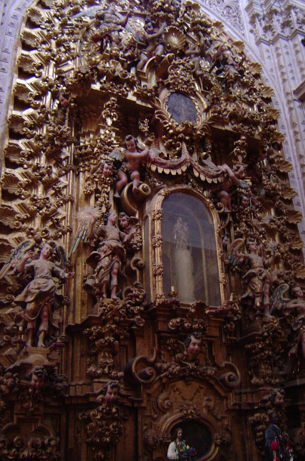 Así que empezó la construcción de la Iglesia que en un principio no iba a ser dedicada a Santa Prisca, pero parece que esta santa es muy caprichosa, por lo que aprovechó una noche de tormenta para aparecerse y sujetar con sus manos los rayos que amenazaban con destruir lo que se llevaba adelantado del templo. Por supuesto que con esto se ganó el honor de que la iglesia le fuera dedicada y pudiera lucir el esplendor churrigueresco que ahora podemos disfrutar.