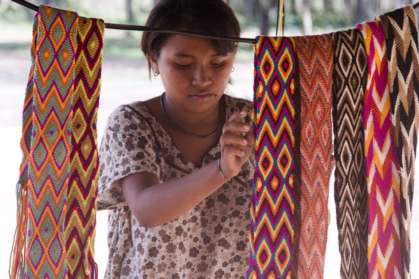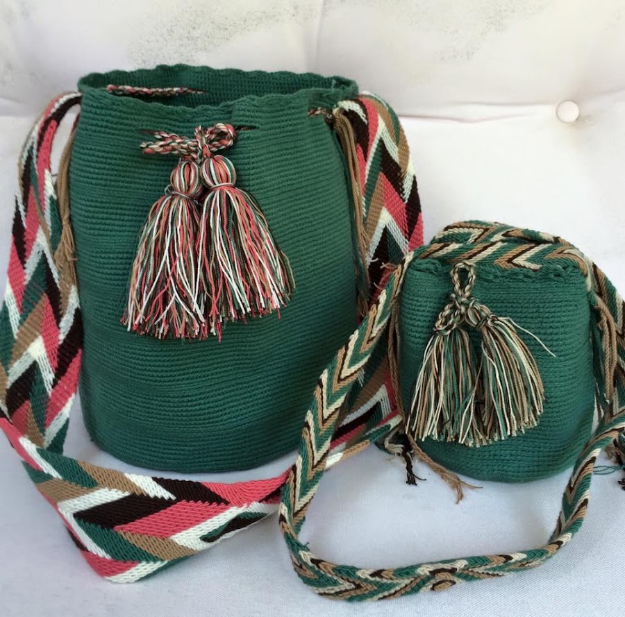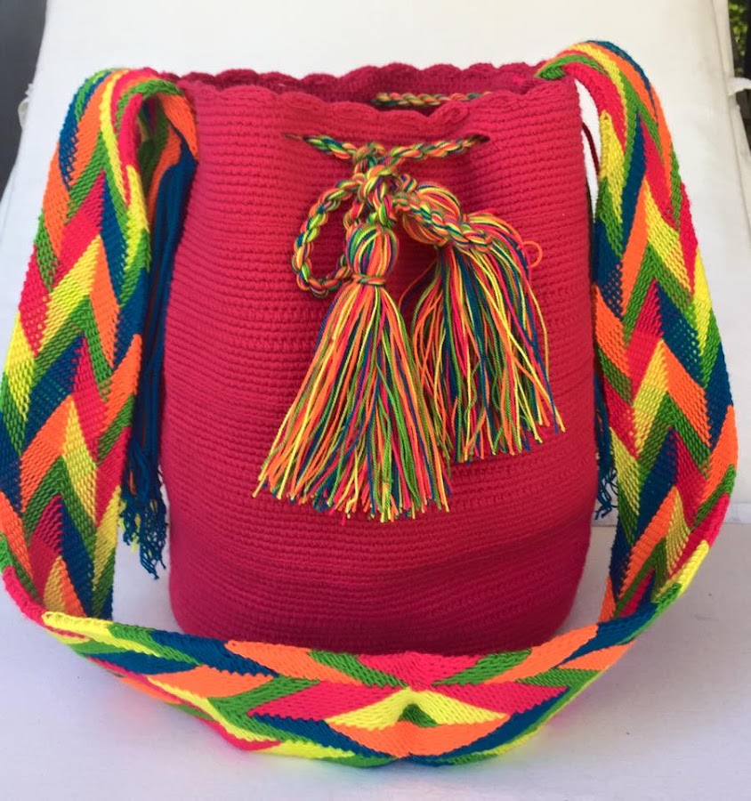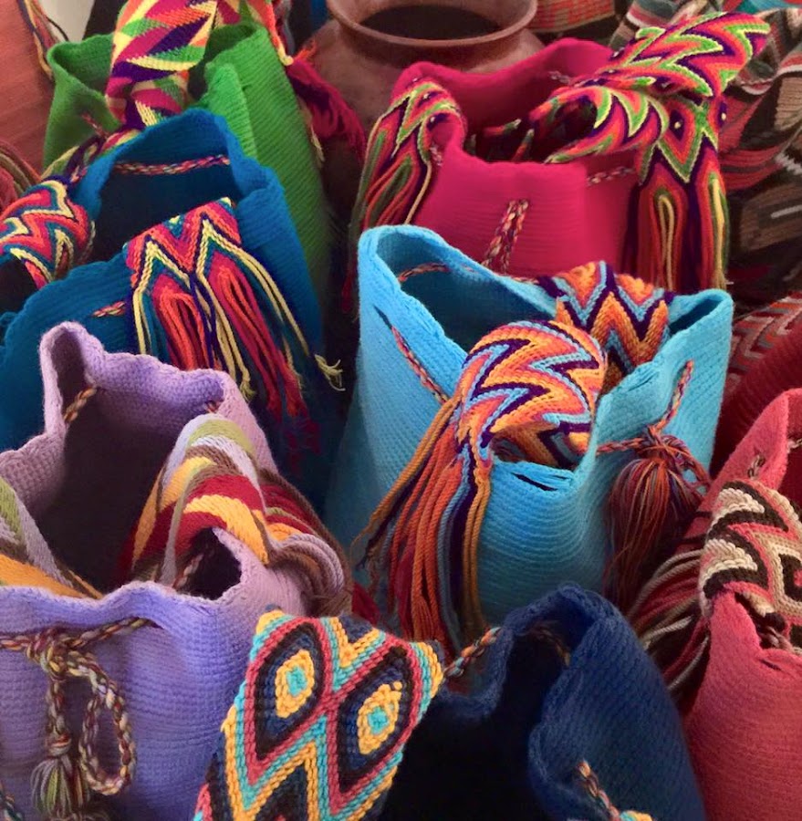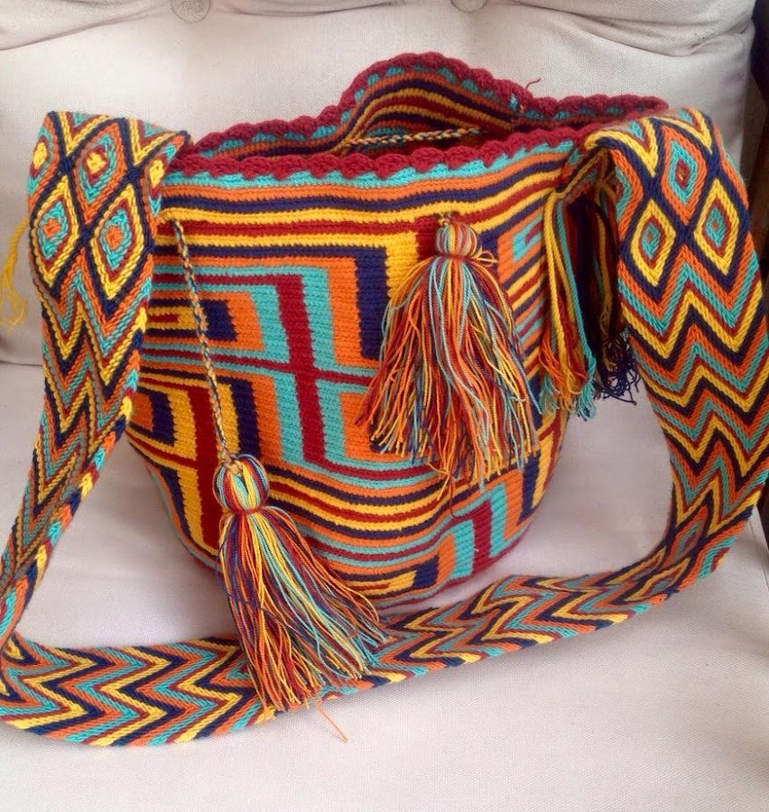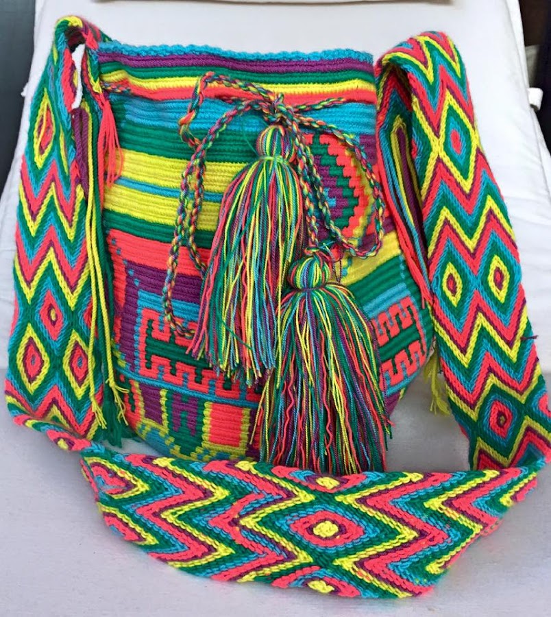 Los Wayuu fabrican estos bolsos artesanalmente. Se caracterizan por su colorido y sus dibujos geométricos.