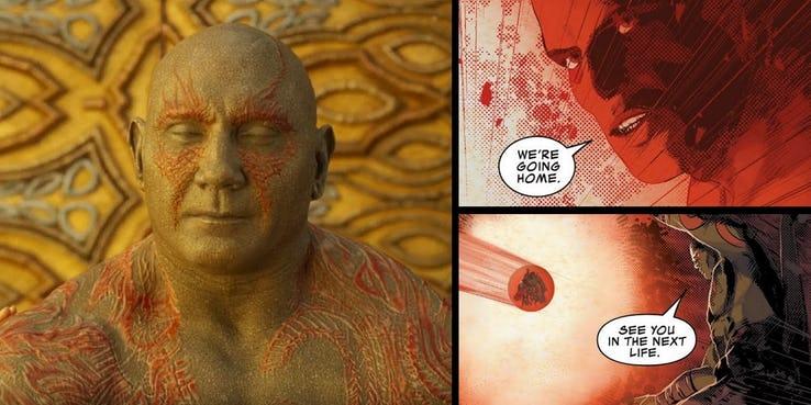 Es imposible decir que Drax regresará o no regresará en algún momento, pero el hecho es que su muerte en los cómics fue significativa, hizo un sacrificio para salvar a miles de millones y finalmente obtuvo descanso después de una vida de enojo y dolor. Y en el MCU, tendría igual sentido.