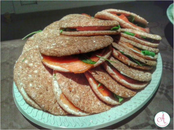 Bocaditos de salmón, queso crema y rúcula.
