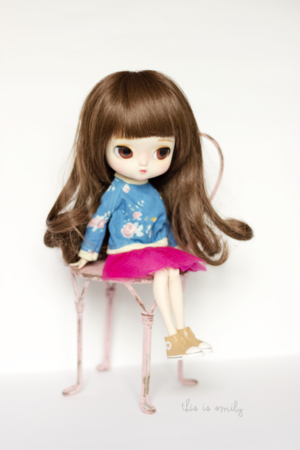 Tenía muchísimas ganas de una muñeca diferente a las Blythe, y que tuviese el cuerpo articulado. Como ya he dicho antes, estas muñes no tienen cuerpo articulado, así que se lo cambié por un Pure Neemo Xs (al cual hay que hacerle un poco de "obra" en el cuello) y ahora está perfecta.