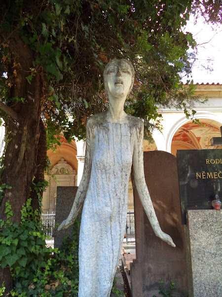 Cercano a la iglesia se alza de forma imponente el antiguo cementerio Vysehrad hoy conocido como Cementerio Slavin llamado así por el mausoleo del cual recibe su nombre.
